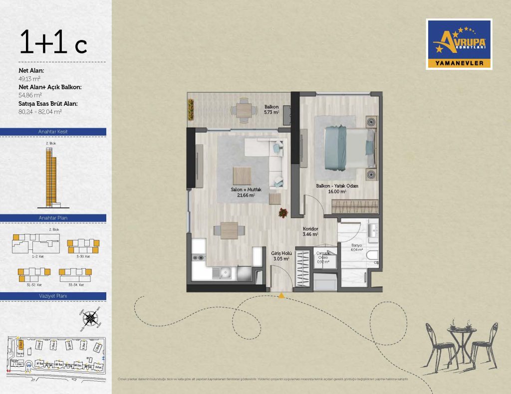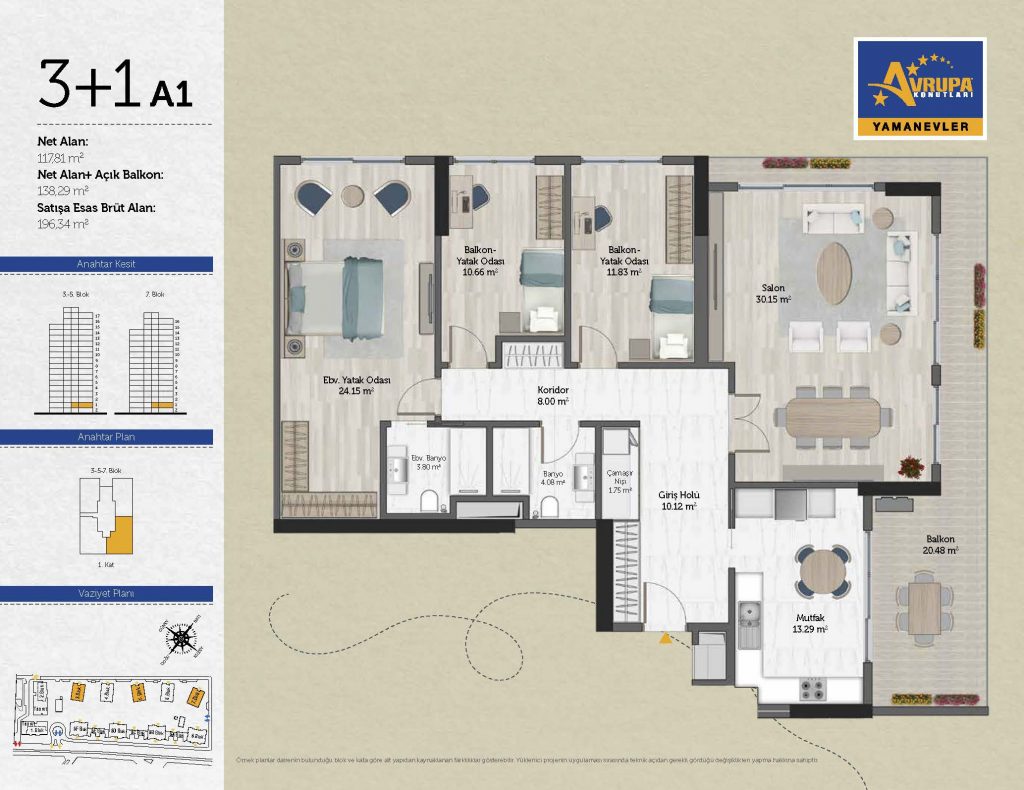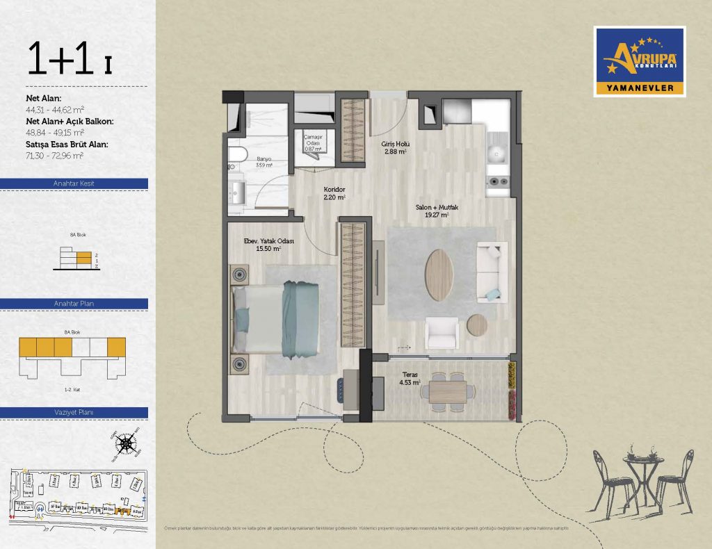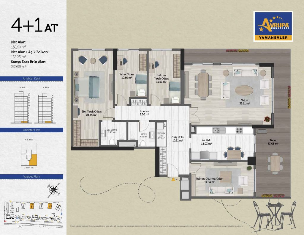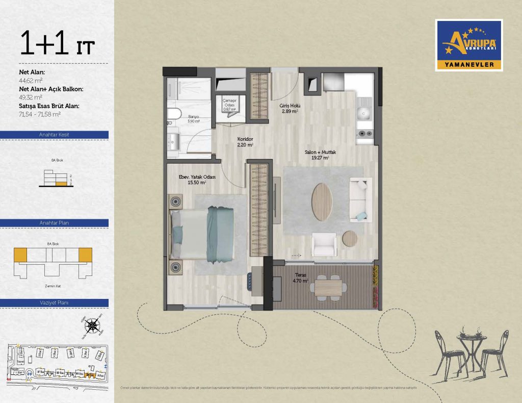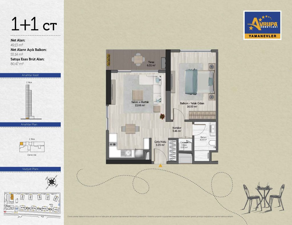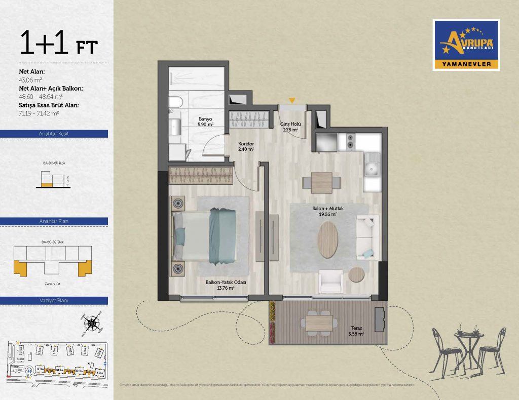 Abalpha brokerage offers 545 residences ranging from 1+1 to 4+1 with 51 different types in the 1st phase. With the privilege of Abalpha brokerage, you can choose the apartment type that suits your needs.