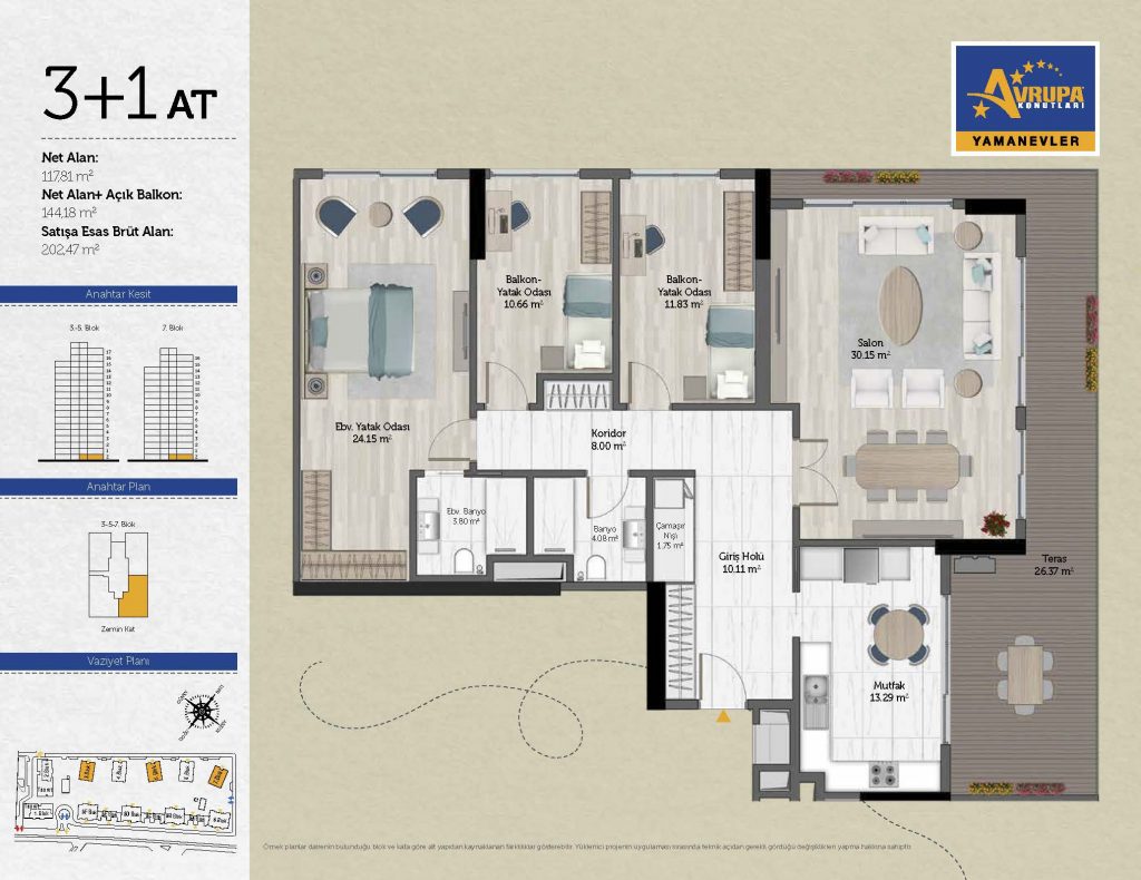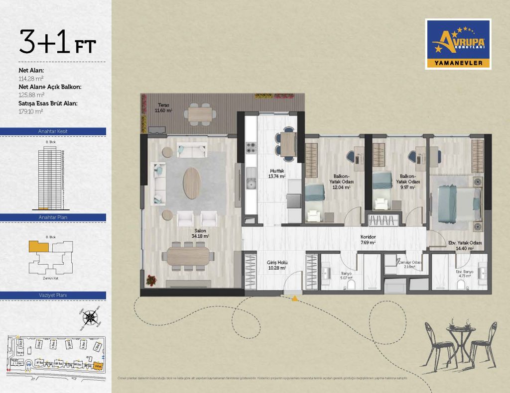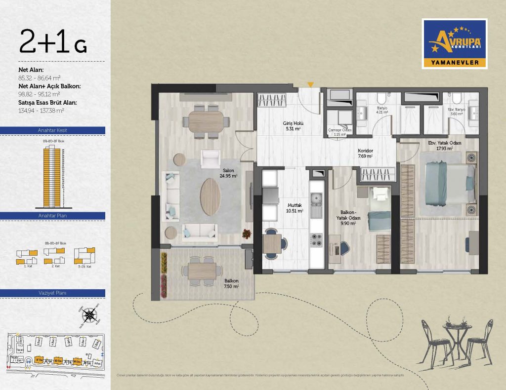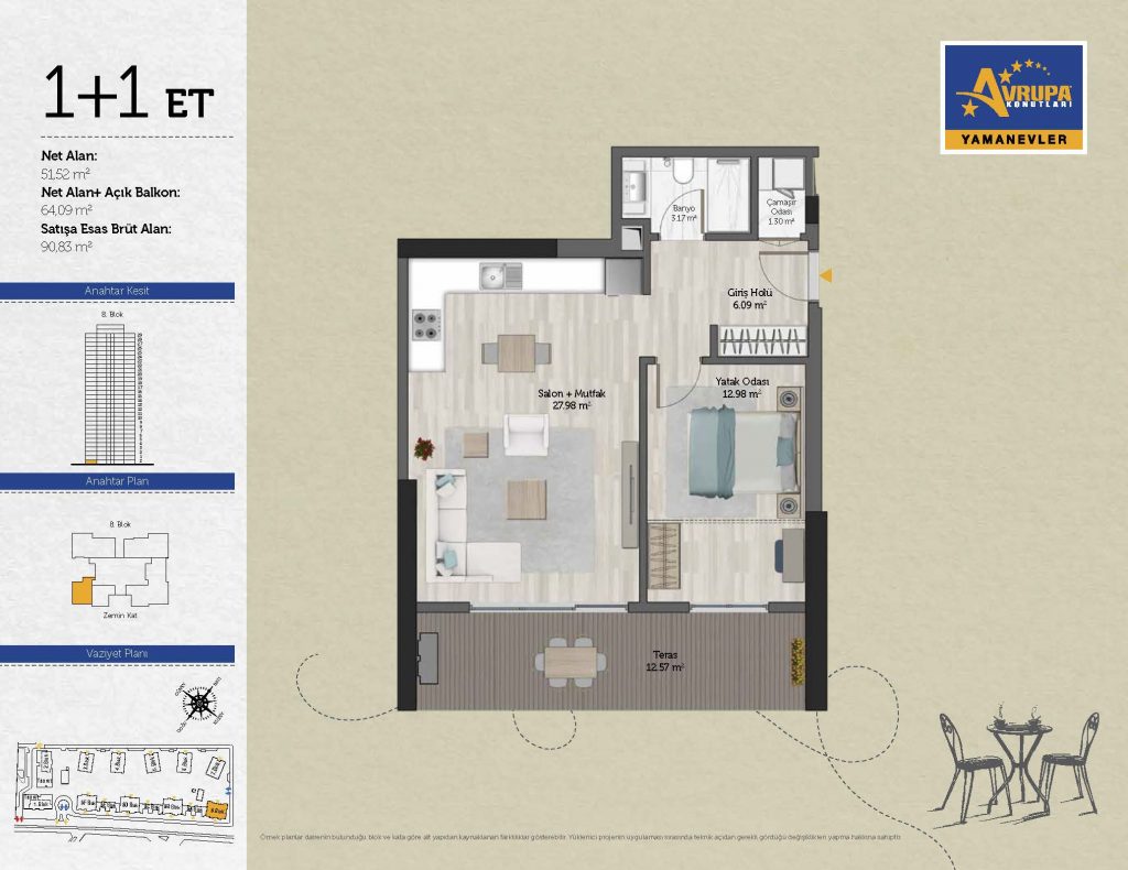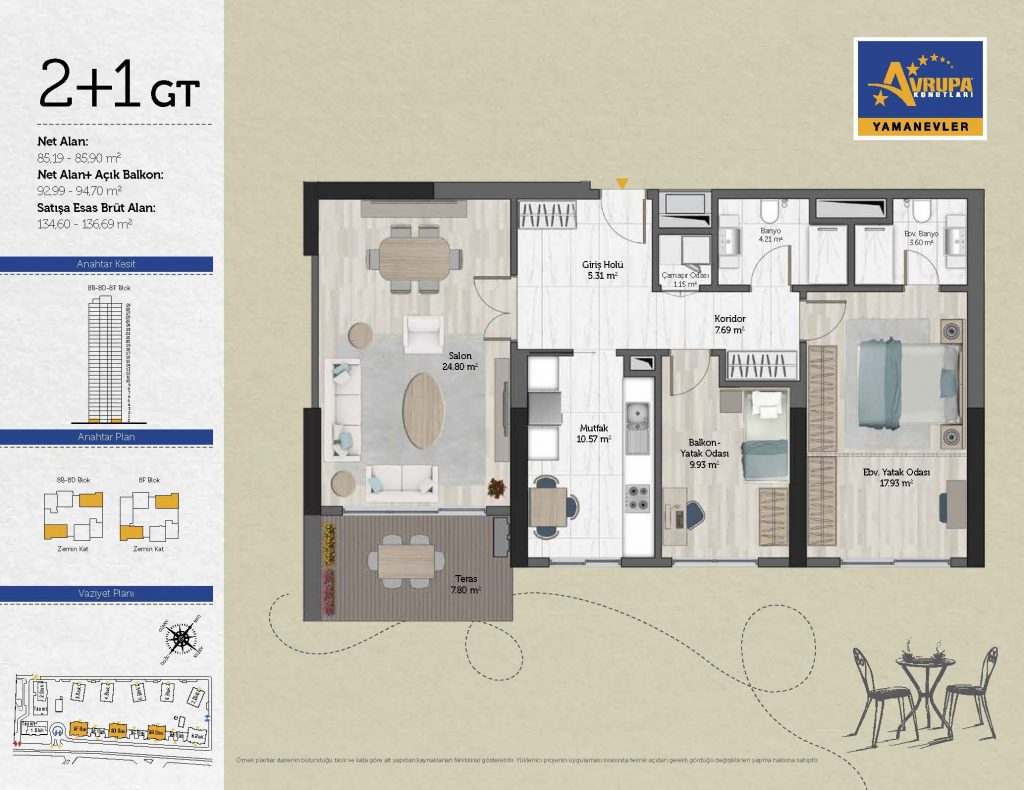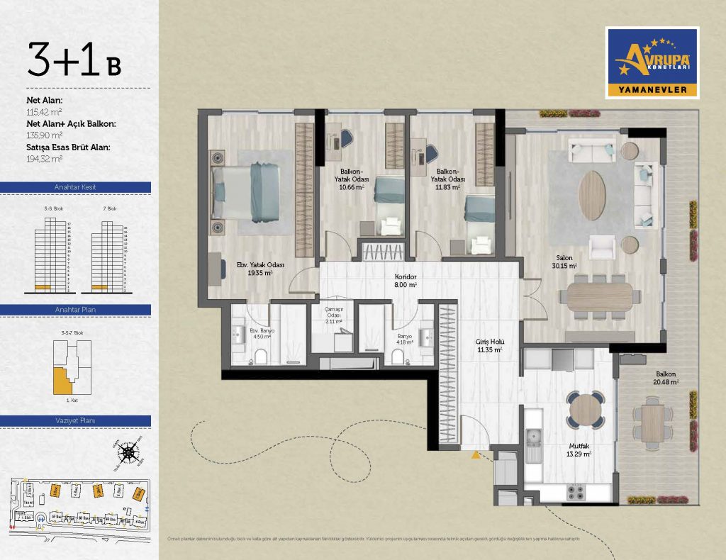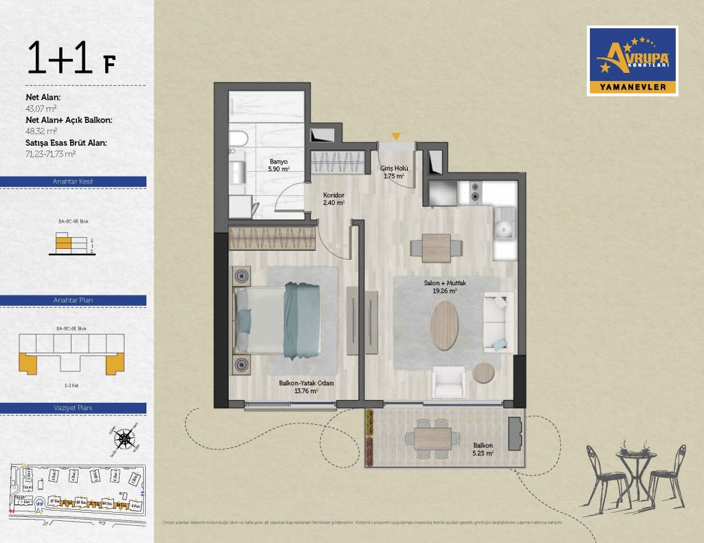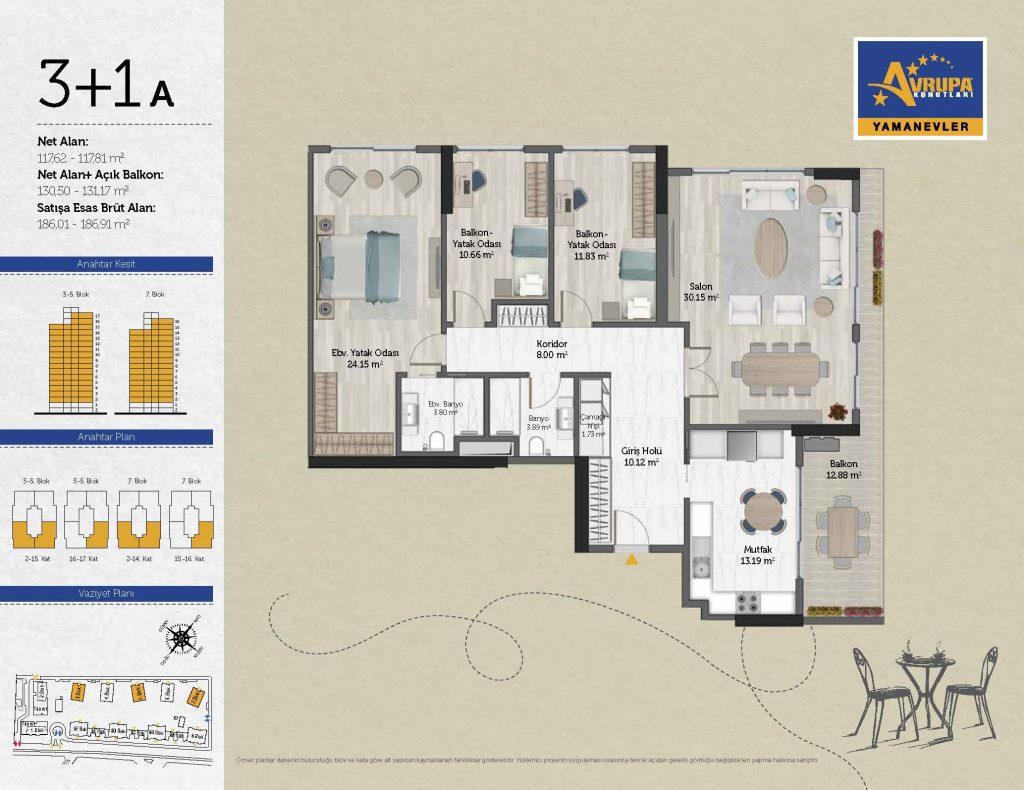 Abalpha brokerage offers 545 residences ranging from 1+1 to 4+1 with 51 different types in the 1st phase. With the privilege of Abalpha brokerage, you can choose the apartment type that suits your needs.